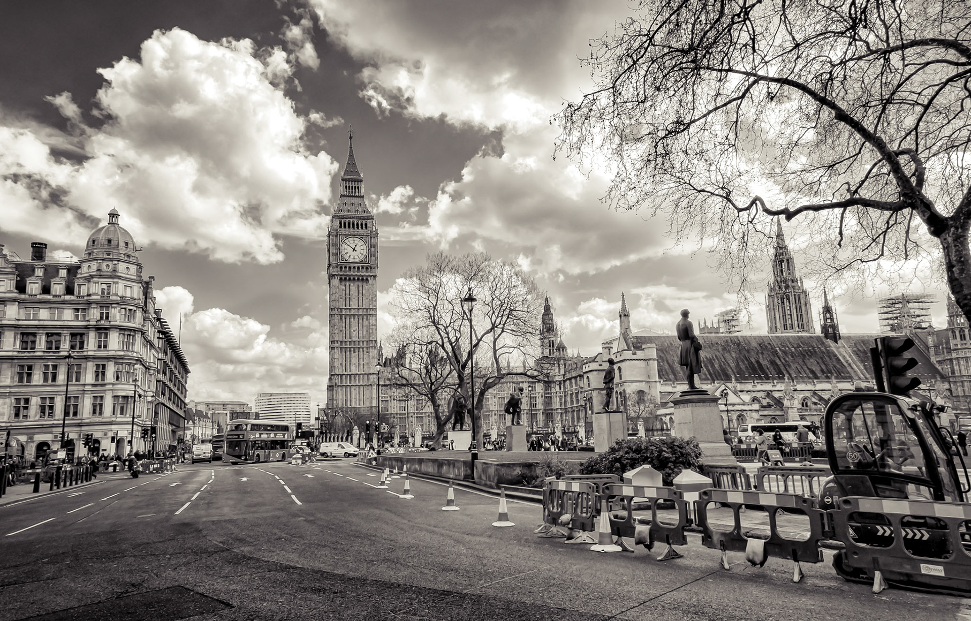 Big Ben and Westminster Bridge. HDRI monochrome