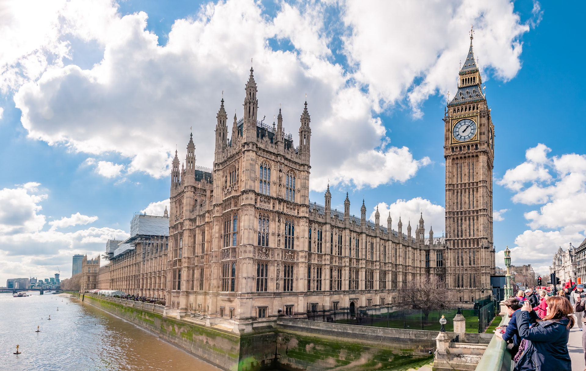 Big Ben, Parliament Building and Westminster Bridge. Realistic HDRI panorama
